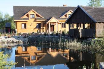 Oferujemy do samodzielnej dyspozycji, bogato wyposażony całoroczny dom letniskowy - dworek o pow. 350 m2 i działce o powierzchni 3.000 m2. Położony jest nad jeziorem Wałpusz (około 100 m od linii brzegowej). Dworek wybudowany został w 2010 roku i wykonany jest z naturalnych materiałów - dach pokryty gontem drewnianym, elewacja wykonana została z bala. Dom został zaprojektowany dla najbardziej wymagających klientów a dzięki przestronności zarówno domu jak i posesji, każdy może odpocząć samodzielnie, jeśli tego potrzebuje lub czynnie integrować się z grupą.